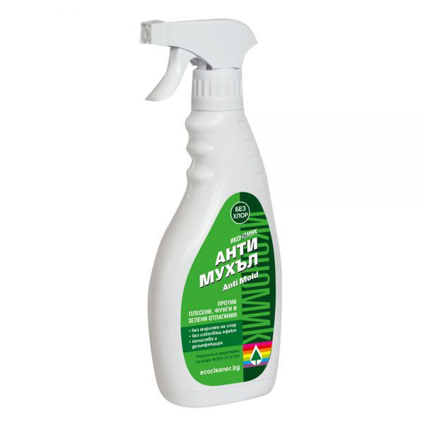 Биоциден препарат за отстраняване на отлагания от плесен и мухъл върху различни повърхности (стени, тавани, плочки, подови настилки, мебели, тъкани Отстранява зелени отлагания в оранжерии плувни басейни, СПА центрове и др. Без неприятната и задушаваща миризма на хлор Без избелващ ефект Дезинфекцира и унищожава спорите и прекратява тяхното развитие за дълго време Разклатете преди употреба Напръскайте или намокрете с препарата Изчакайте 5-10 минути и тстранете плесента или зелените отлагания със суха или влажна кърпа, или отмийте с вода