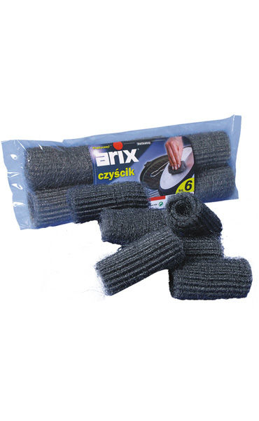 АРИКС Тел домакинска 6бр Изключително фини стоманени ватни рула, подходящи за грубо почистване на саксии, съдове, фурни, неръждаема стомана и всички не-деликатни повърхности. Те могат да се използват и за отстраняване на боя с подходящ разтворител. Без остатъци, без мирис, дълготрайни