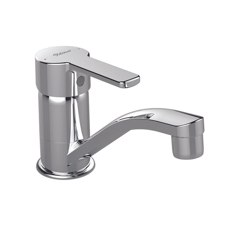 Стоящият смесител B1057АА e висококачествен смесител за кухня или баня с месингово, цилиндрично тяло, в цвят хром. Чучура е нисък, но издължен и с леко извит дизайн, който може да се върти за още по-голямо удобство. Има 35 mm керамичен затварящ механизъм и стандартна метална ръкохватка с индикация за топла и студена вода. Използването на аератор с ограничител на дебит позволява значителна икономия на вода. Вместо обичайния дебит 11 l/min, ограничителя лимитира дебита на вода до 5 l/min. Огромен плюс е системата EASY-FIX, която осигурява лесен монтаж на смесителите, благодарение на специалната конструкция на гумената подложка и металната шайба. Това ви позволява да затегнете гайката върху шпилката бързо и без помощник. Със смесителя B1057АА, не само ще имате модерна и стилна кухненска мивка, но и ще получите изключително удобство при използването му.