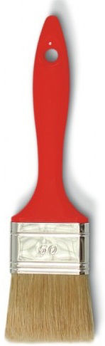 Плоска четка Grizzly с бял естествен косъм микс и пластмасова дръжка; широчина - 70мм; косъмът е прикрепен към тялото чрез ламаринен обръч; четката е клас 6 и с 60% връх; подходяща е за нанасяне на фасадни бои, бои с разтворители и лакове за дърво;