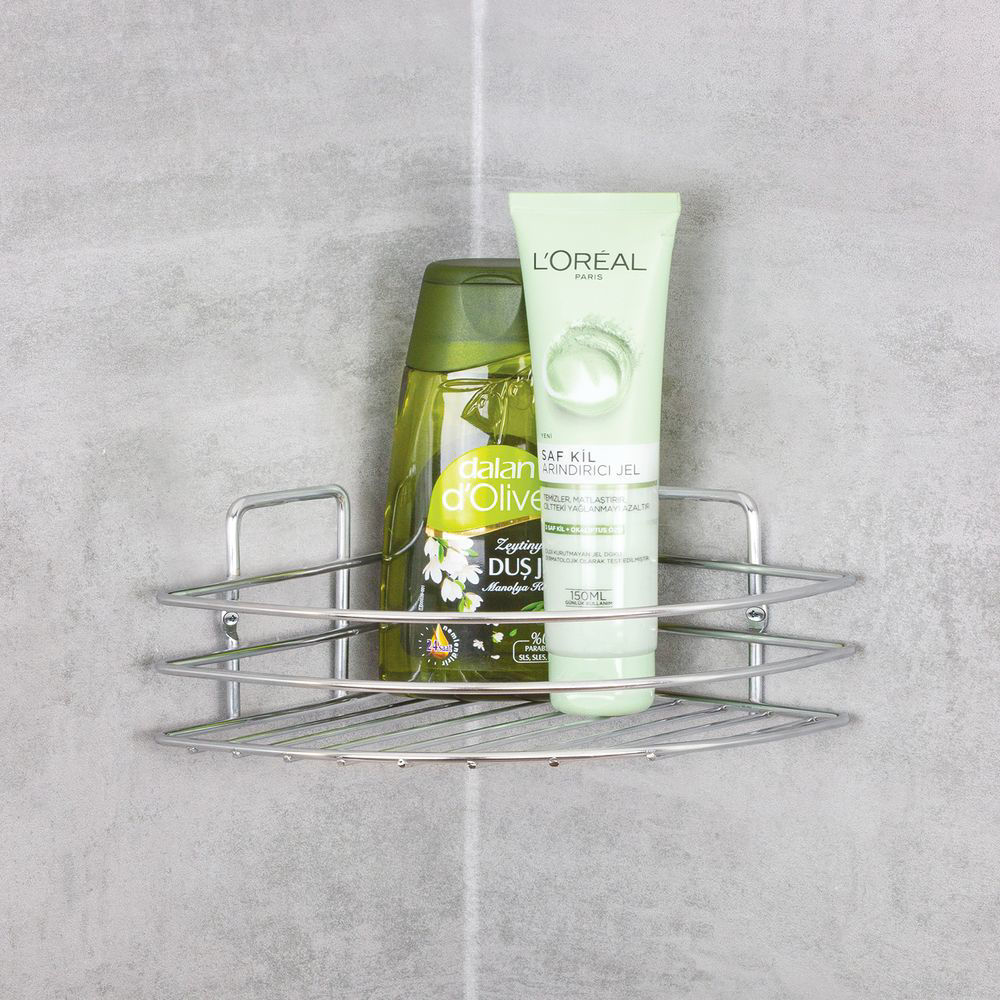 Ъглова етажерка за баня на водеща фирма производител. Удобна и практична, тази етажерка е подходяща за всяка модерна баня. Функционална и с невероятен дизайн, етажерка Eco е подходящият продукт за всеки потребител. Фиксирането на продукта за стената става с винтове. Размерът на ъгловата етажерка е 18 см. в цвят хром.