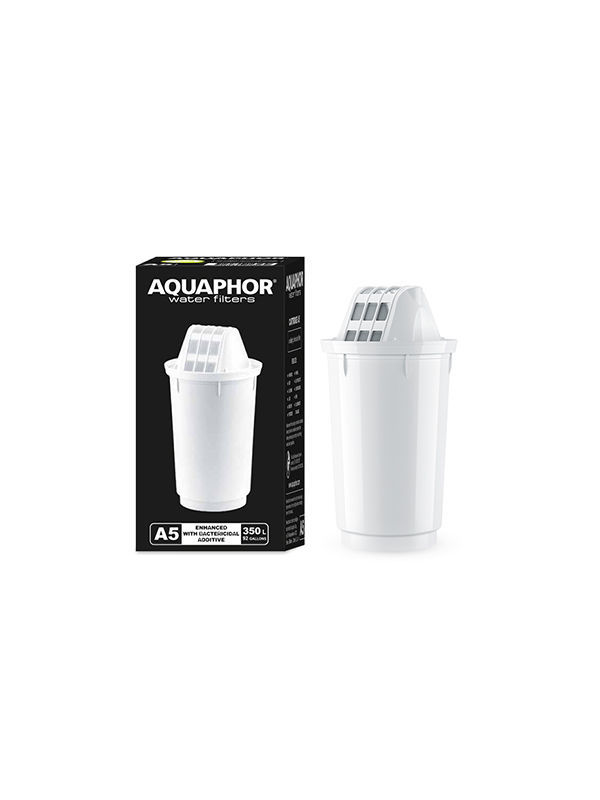 Новият филтър за вода Аквафор A5 е създаден специално за силно-замърсена вода, която съдържа големи количества механични примеси като ръжда, пясък, утайка. Дори в тези условия, A5 не се задръства преждевременно и продължава да пречиства Вашата вода от хлор и други разтворими примеси. Конструкцията на филтъра за кани Аквафор A5 му позволява да се самопречиства всеки път, когато напълвате каната. По този начин няма да се налга подмяната му много често. Имайки предвид увеличения ресурс, филтърът може да прослужи до 3 месеца в тричленно семейство. Също така, филтърът Аквафор A5 Mg+ обогатява филтрираната вода с оптимални количества магнезий, който е полезен за сърцето и кръвоносните съдове. По данни на СЗО, магнезият се явява най-дефицитният минерал за населението на Земята: набавянето на дневната норма магнезий в съвременния град е много сложно, а недостатъкът увеличава риска от заболявания на нервната и сърдечно-съдовата системи. Филтърът е съвместим с кани Арктик, Престиж, Ултра, Прованс, Орлеан, Смайл, Триумф Предотвратява образуването на накип (котлен камък), премахвайки излишния калций, като така кафето или чаят, приготвена с филтрираната вода, не губят своите натурални вкусове. Защитава вашия чайник, кафемашина или мултикукър от прегряване и счупване с 50% по-голяма ефективност, отколкото филтрите на други производители. Обогатява с магнезий, защитава сърцето, мускулите, и костите от негативните влияния на съвременния ритъм на живот. Филтърът Аквафор A5 ефикасно намаля най-вредните примеси във водопроводната вода. Те включват: Седименти като ръжда, пясък, кал, полен Хлор, хлороформ, и други органични хлорни съставки Метали и тежки метали: желязо, олово, живак, мед, алуминий Нефтохимикали Феноли Лекарства, включително хормони и антибиотици Как работи филтъра: 1. Активният въглен от кокосови черупки попива като гъба вредните примеси от водопроводната вода: хлора и неговите съединения, нефтопродукти, други токсини. Избистря водата и подобрява нейния вкус и мирис. 2. Аквален задържа тежките метали от водата (живак, олово, мед, арсен), които често се срещат във водопроводната вода. 3. Ръждата, пясъка, утайката или други груби частици не запушват филтъра, благодарение на фините гранули активен въглен в комбинация с влакното Аквален, който създава милиарди каналчета за водата, подобно на корените на растенията в почвата. Аквален придържа гранулите активен въглен на мястото им и не позволява на водата да направи свои собствени каналчета, през които да преминава без да бъде филтрирана. 4. Йонообменната смола омекотява водата, премахвайки солите на твърдостта. Благодарения на това, ястията и напитките, приготвени с такава вода ще бъдат по-вкусни, тъй като хранителните съставки ще се разтварят много по-ефикасно. 5. Активното сребро във филтъра не позволява развитието на микроорганизми във филтъра. Поради това, филтърът може да се използва по-дълго време.