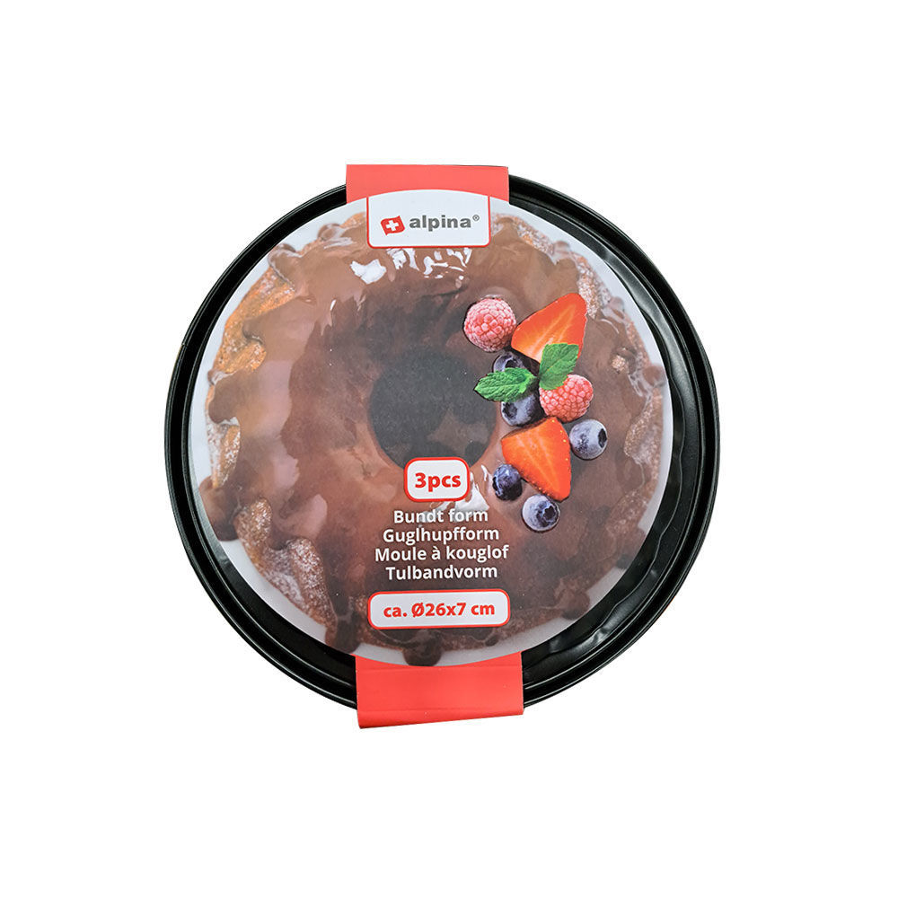 Пригответе вкусни сладкиши с удобната форма за печене от Alpina от 3 части - тава, ринг и форма за кекс. Тя е с диаметър 26см и е с незалепващо покритие. Формата е идеална, както за печене на блатове, кексове и различни печива, така и за направата на вкусен чийзкейк или желирани сладкиши, при които да се запази кръглата форма. Благодарение на това, че стената на формата е отварящ се ринг, вие лесно ще извадите десерта без обръщане или разваляне на цялостния му вид. Така той ще си остане в тавата идеално изглеждащ и ще е готов за сервиране. Вземете незалепващата форма за печене Alpina и зарадвайте цялото си семейство с вкусни десерти.