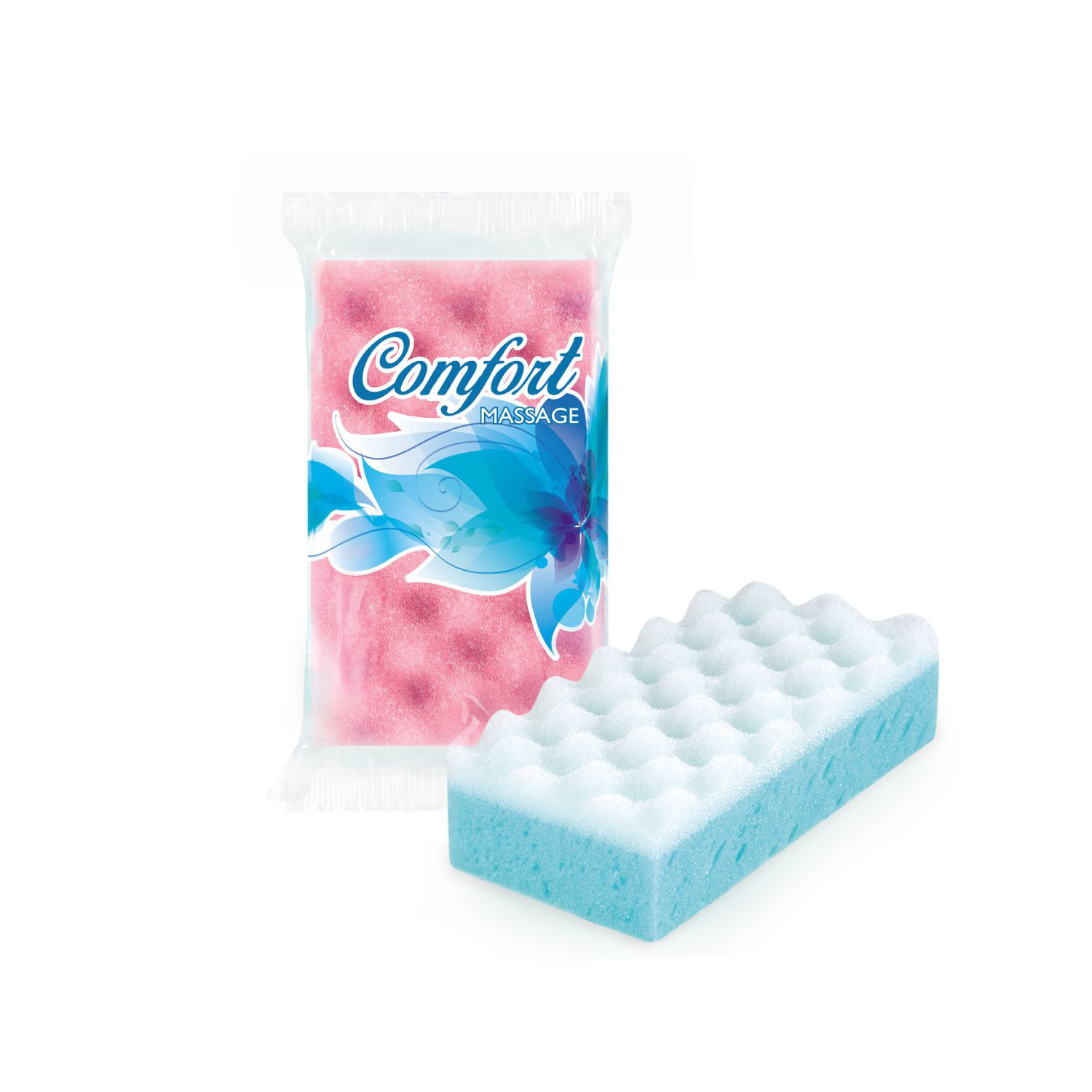 Гъба за баня от порест материал за максимално разпенване на душ-гел и шампоан. С нежна масажна повърхност и правоъгълна форма.