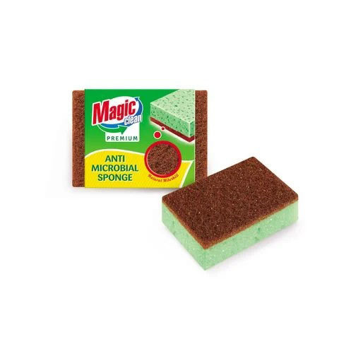 Magic Clean Premium Anti Microbial Sponge представлява гъба за универсална употреба в домакинството. Произведена от порест материал за максимално разпенване на препарата и здрава абразивна повърхност с медни частици, които имат антибактериално действие. Осигуряват бариера срещу развитието на плесени и гъби в меката част на гъбата.