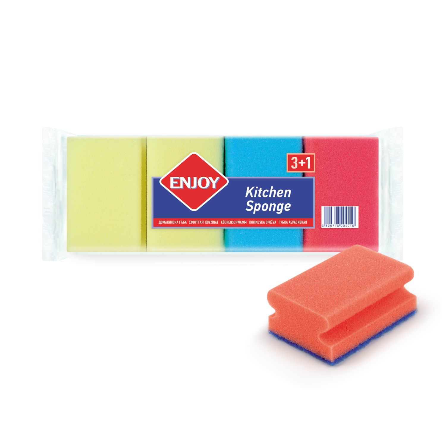 Домакински гъби с канал 4 бр. за ежедневна употреба в домакинството. Каналът на гъбата служи за предпазване на пръстите от контакт със замърсените повърхности.
