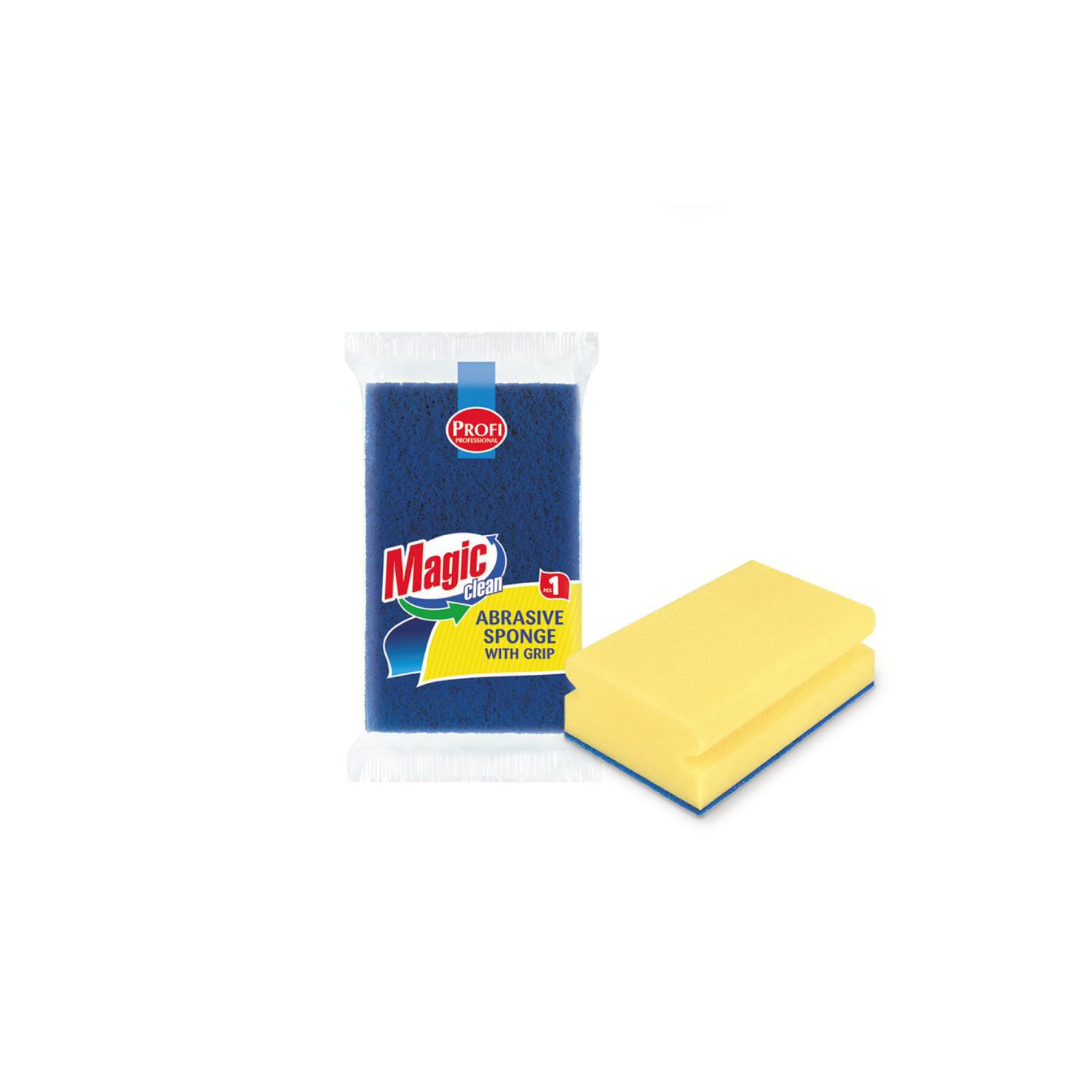 Домакинска гъба 1 бр. с канал за предпазване на пръстите от контакт със замърсените повърхности. Подходяща за универсална употреба в домакинството за почиставане на по-големи съдове и повърхности. Поради големия размерът гъбата е подходяща за употреба и в професионалните сфери - HoReCa. Произведена от материал с висока плътност за максимално разпенване на препарата и здрава абразивна повърхност.