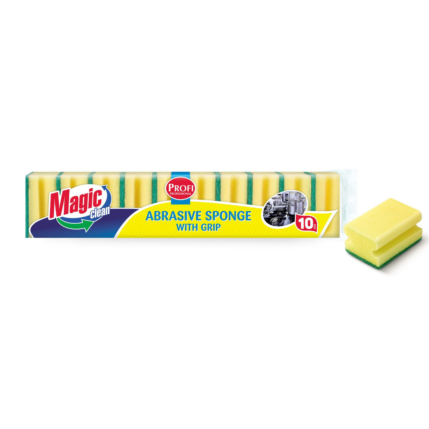 Домакинска гъба 10 бр. с канал за предпазване на пръстите от контакт със замърсените повърхности. Подходяща за универсална употреба в домакинството. Поради оптималния размерът гъбата е подходяща за употреба и в професионалните сфери - HoReCa. Произведена от материал с висока плътност за максимално разпенване на препарата и здрава абразивна повърхност.