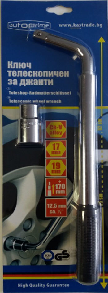 - Качествена изработка с покритие Хром-Ванадий; - По-голяма здравина и сила на въртене; - Накрайници 17/19мм - Телексопична дръжка разтягаща се от 22см до 41см - TUV/GS изпитан