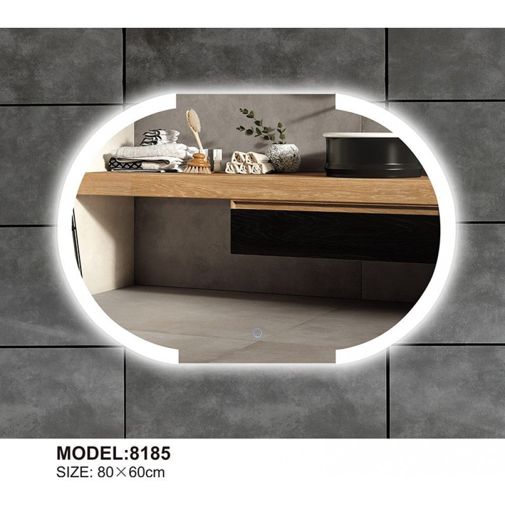 Лед огледало за баня 8185 е класически и изчистен модел, който може да бъде част от всяко помещение, независимо в какъв стил е обзаведено. Огледалото е с овална форма и разполага с матирани ивици, които следват главните очертания, а LED лентата е монтирана под тях в ПВЦ гръб. Формата му е нежна и успокояваща и е с изключително реалистично качество на отражението. С LED огледалото 50х70см, не само няма да сгрешите, но и ще направите дома си по-интересен, модерен и стилен.