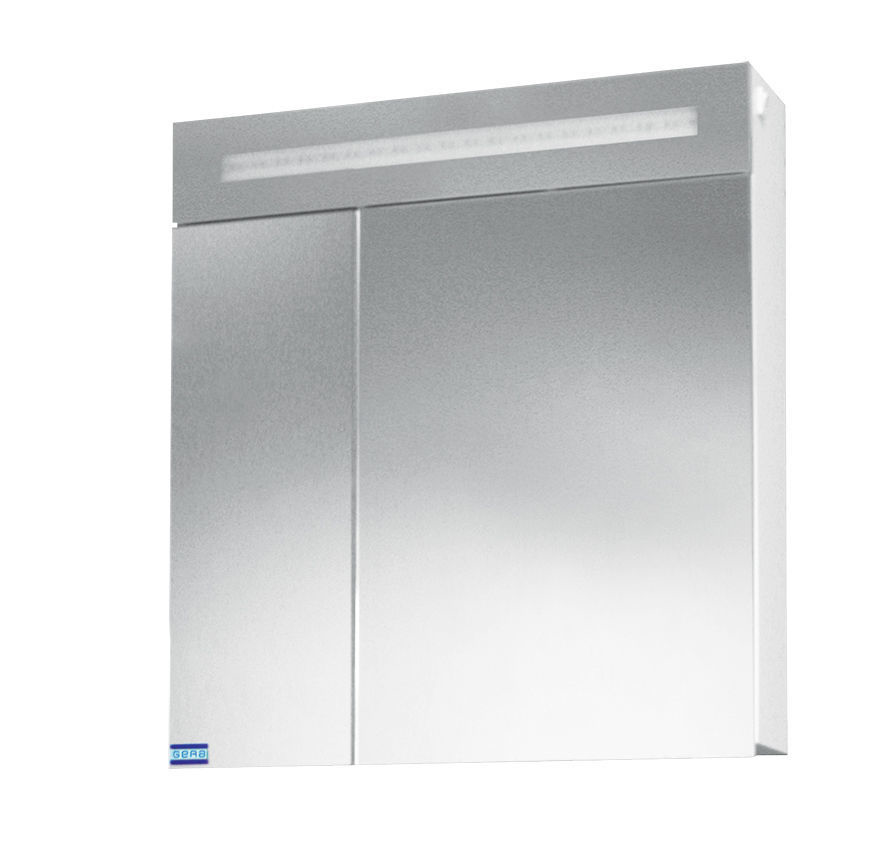Огледалният шкаф за баня Мира е изработен от ПВЦ материал с водоустойчиво покритие, за да запази своя прекрасен външен вид в течение на времето. Огледалният шкаф има изчистен дизайн, който да внесе повече елегантност в помещението, без излишни рафтове отвън. Шкафа има две огледални вратички за по-лесно отваряне и голяма LED лента над тях за по-добро осветяване, независимо от осветлението в помещението. Огледалото за Баня Мира е идеалният вариант за всяка баня и може да се съчетае с голяма гама от долни шкафове.