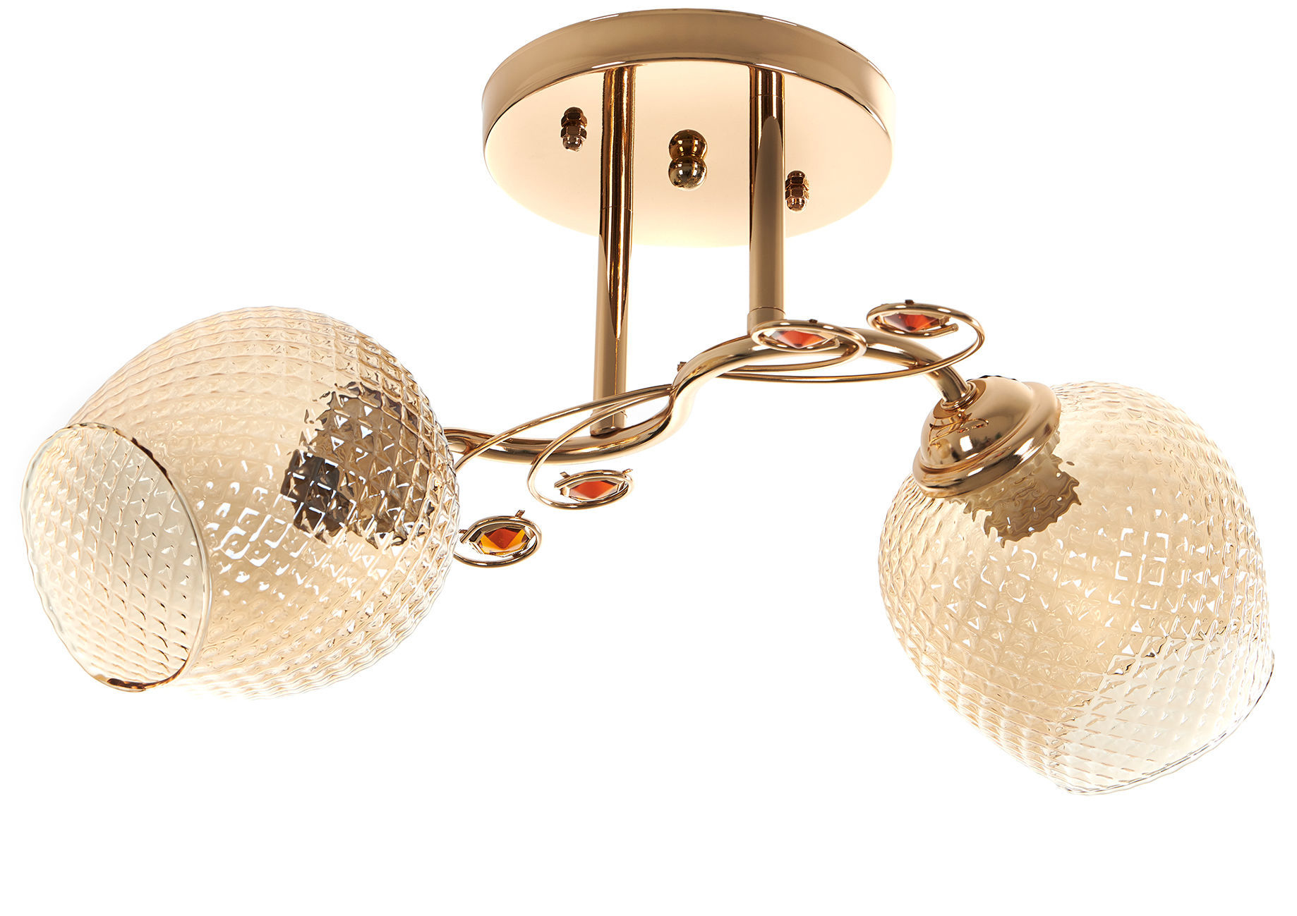 Метален полилей в цвят злато. Абажурите са от стъкло. ФАС. 2 х Е27, МАХ. 28 W