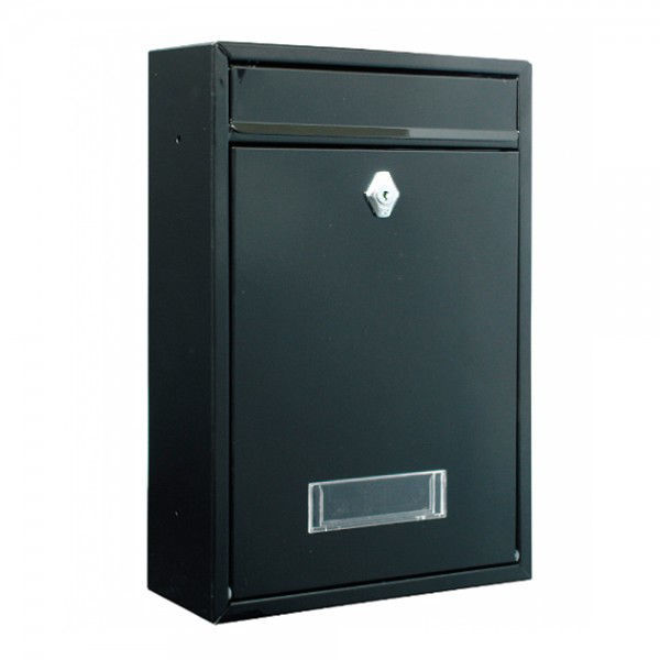 Вертикална метална пощенска кутия BERMEO с 2 ключа, черна Изработена от метал с покритие. Отвора за пощата е с челен капак. Пощенската кутия има странични отвори за закрепване на няколко кутии една до друга на стената.