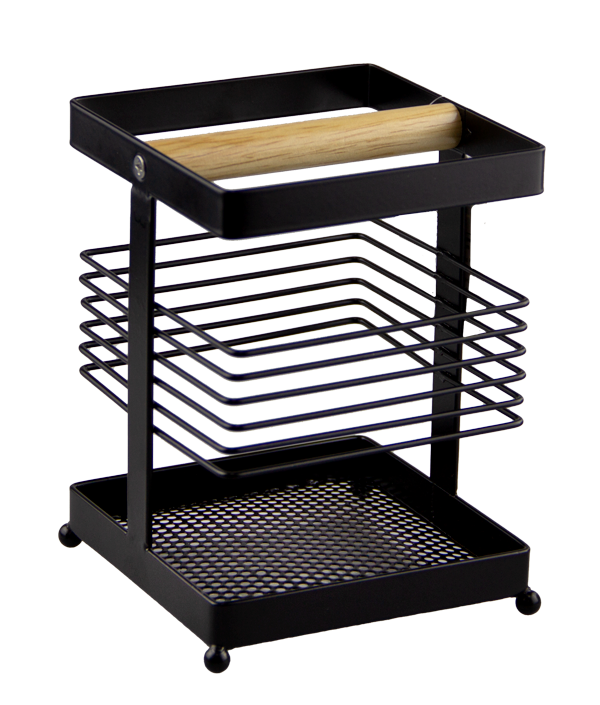 Поставка за прибори с дървен разделител G-MATT BLACK