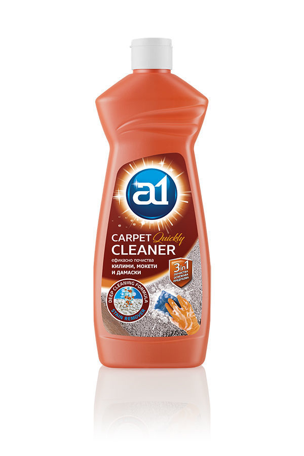 A1 CARPET CLEANER е ефикасно почиства килими, мокети, дамаски. Ефикасен при отстраняването на петна от килими, мокети, мебелировка. Благодарение на иновативанта си формула DEEP CLEAN препаратът прониква в дълбочина на тъкант, за да отстрани най - трудните петна. Нежно почиства като предпазва тъканта и цвета.