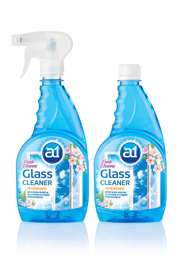 A1 GLASS CLEANER е препарат за стъкло и глатки повърхности които гарантира чистота и блясък и свеж аромат на всички стъкла, огледала, плочки, електроуреди, пластмасови и алуминиеви порърхности в домакинството като, осигурява антистатичен ефект. Продукта се предлага и в опаковка пълнител за повторно използване на помпичката.