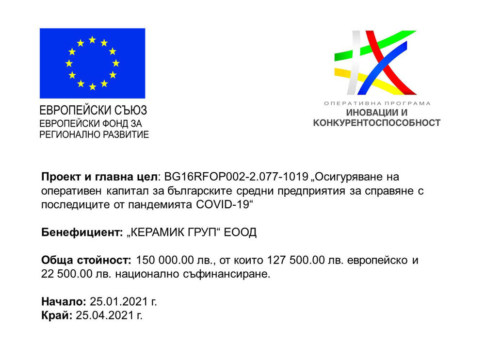 Проект и главна цел: BG16RFOP002-2.077-1019 „Осигуряване на оперативен капитал за българските средни предприятия за справяне с последиците от пандемията COVID-19“