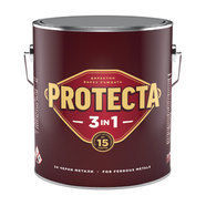 PROTECTA 3in1 е продукт за защита на черни метали от атмосферни влияния, произведен с висококачествени алкидни смоли. Употребява се за декорация и защита на нови и ръждясали повърхности от черни метали – врати, парапети, огради и др. 3in1 – преобразувател на ръжда, грунд и декоративно покритие Лесно нанасяне и много добра покривнос Нанася се директно върху ръждата Пълна атмосфероустойчивост Покритието издържа тест от 300 часа на солена мъгла Покривност: 12-14 m²/L Изсъхване на допир: 6 часа Пълно изсъхване: 24 часа Средства за нанасяне: четка, валяк, пистолет