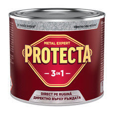 PROTECTA 3in1 е продукт за защита на черни метали от атмосферни влияния, произведен с висококачествени алкидни смоли. Употребява се за декорация и защита на нови и ръждясали повърхности от черни метали – врати, парапети, огради и др. -3in1 – преобразувател на ръжда, грунд и декоративно покритие; -Лесно нанасяне и много добра покривност; -Нанася се директно върху ръждата; -Пълна атмосфероустойчивост; -Покритието издържа тест от 300 часа на солена мъгла.