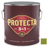 • PROTECTA 3in1 е продукт за защита на черни метали от атмосферни влияния, произведен с висококачествени алкидни смоли. Употребява се за декорация и защита на нови и ръждясали повърхности от черни метали – врати, парапети, огради и др.