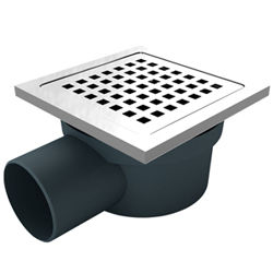 Подов сифон със страничен изход O50, 114x114 мм решетка и рамка от стомана 304 , двойна защита - клапа и воден затвор