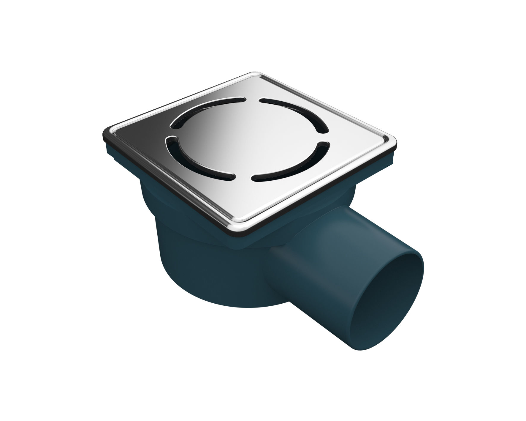 Подов сифон със страничен изход O50, 100x100 мм решетка и рамка от стомана 304 , двойна защита - клапа и воден затвор