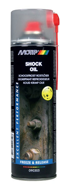 MOTIP шоково проникваща смазка 500 мл. - ефективно средство за разхлабване на ръждясали и клеясали връзки и съединения; кратковременното, но силно понижаване на температурата (-30°С) на обработваните със спрея детайли позволява съдържащата се в него смазка да проникне и способства за лесното разхлабване на проблемните съединения; спреят притежава отлични смазочни качества и има широко поле на приложение;