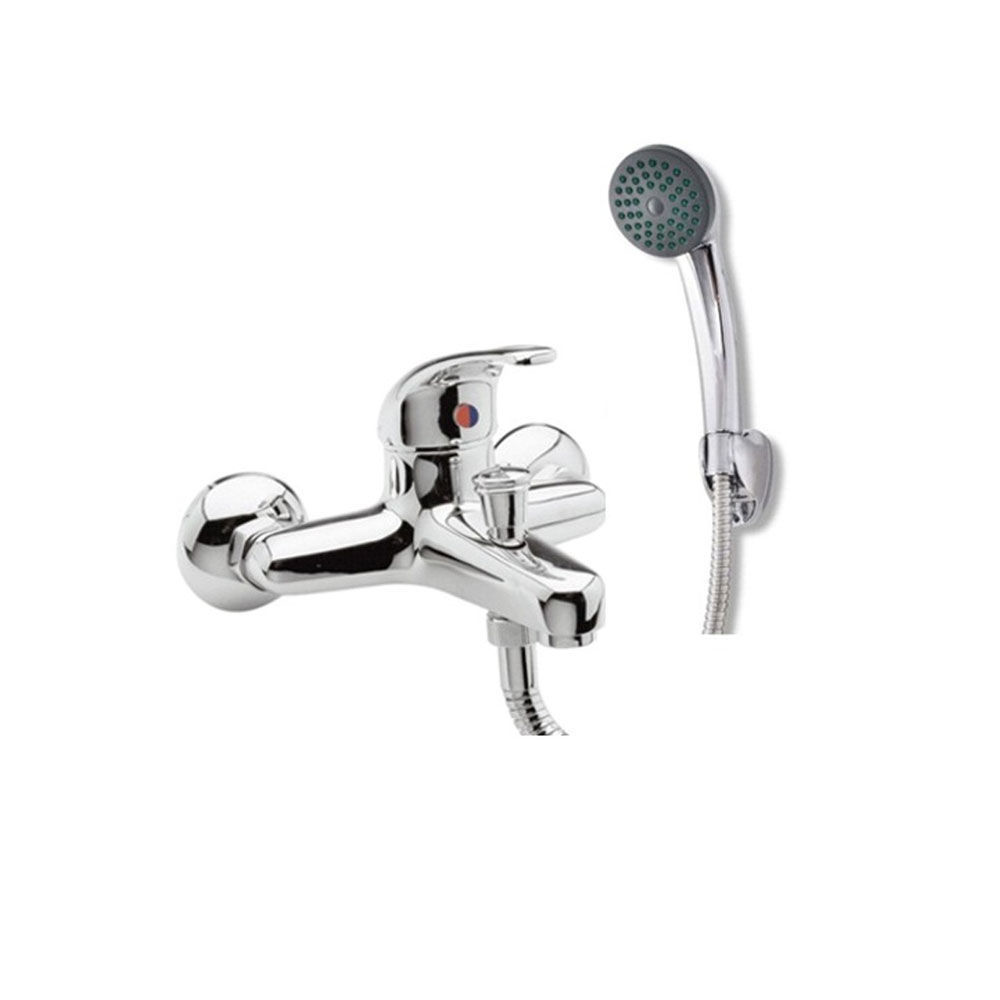 Смесителят за вана/душ е с класически, изчистен дизайн. Комплектът включва смесител, слушалка и шлаух. Смесителят е с цвят хром и има удобна ръкохватка с индикация на топла и студена вода. Поставянето му е стенно с разстояние 150мм. Смесителят е с ръчен душ без функции и шлаух 1,5 м. Няма тръбна част, което го прави компактен и лесен за монтиране.