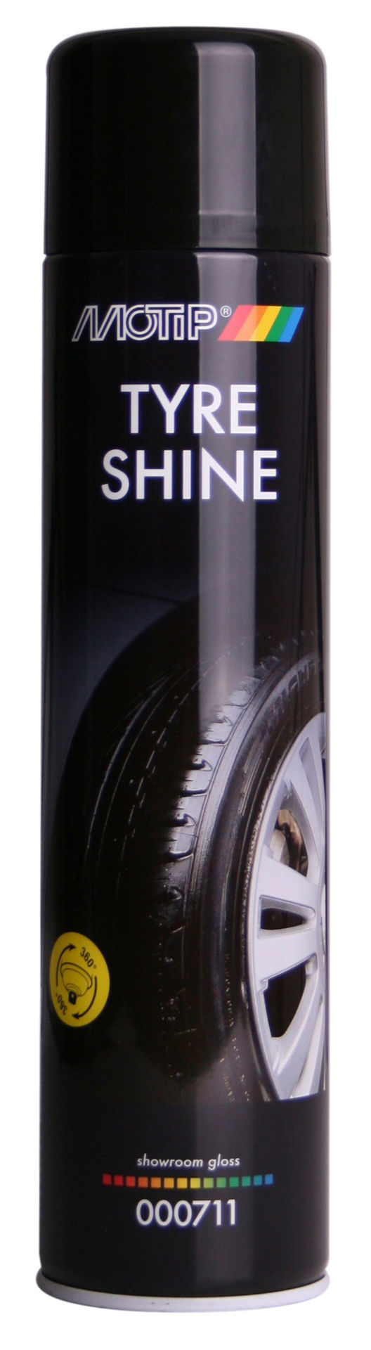 MOTIP Спрей гланц за гуми, 600мл. - висококачествен спрей за подсилване цвета на автомобилните гуми; лесен за употреба; съдържа силикон; препазва от атмосфени въздействия; pH – неутрален; придава блясък; за по-дълготраен ефект е препоръчително да се нанася още докато гумите са мокри;