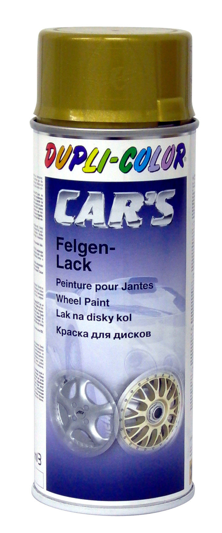 Спрей за джанти CAR'S - цвят злато, 400мл. - акрилна автомобилна боя от серията CAR`S; подходяща за цялостни и довършителни работи по автомобила; боята е бързосъхнеща с отлична адхезия, устойчива на атмосферни влияния;