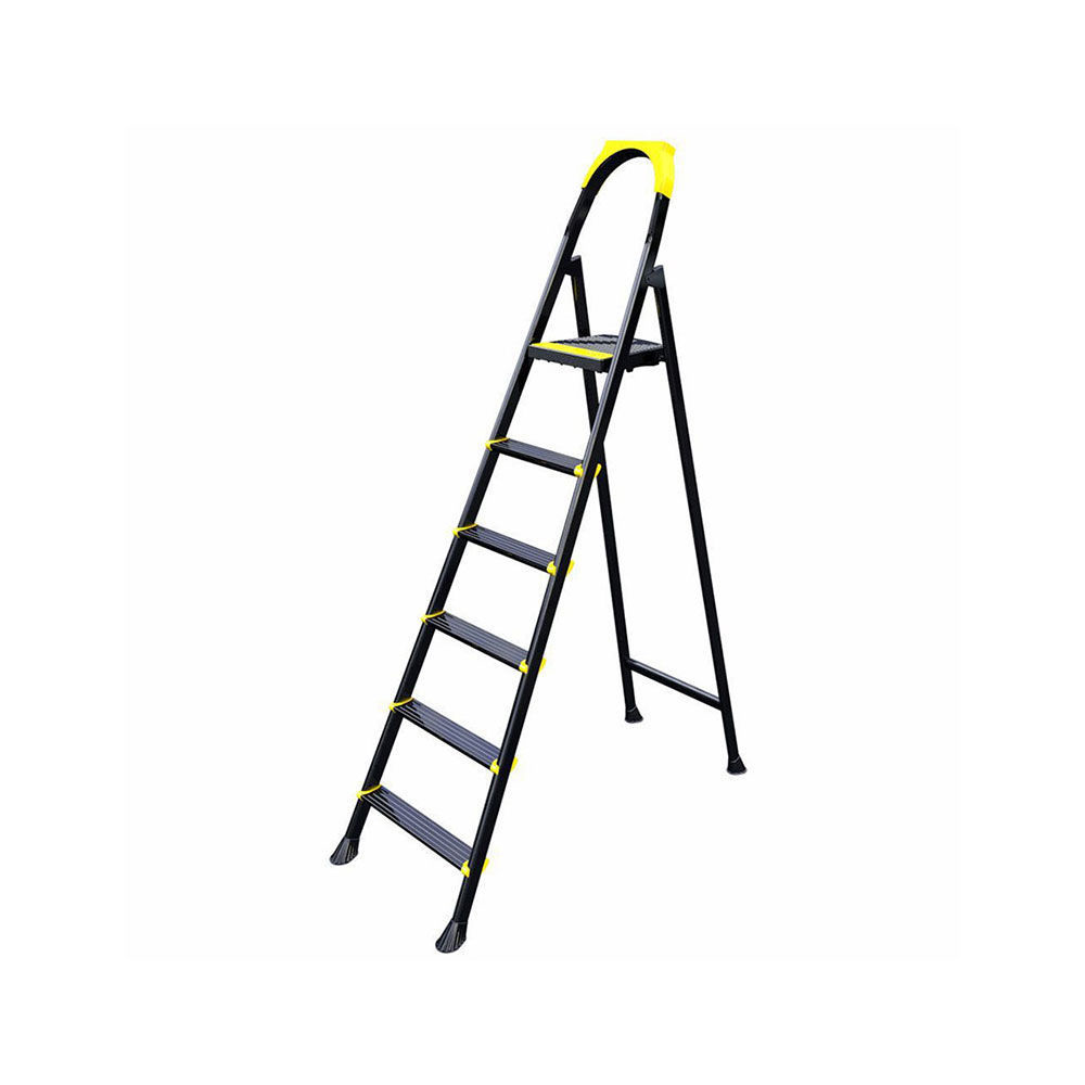 Стълба подвижна LEO 6+1 – метална черна + жълто