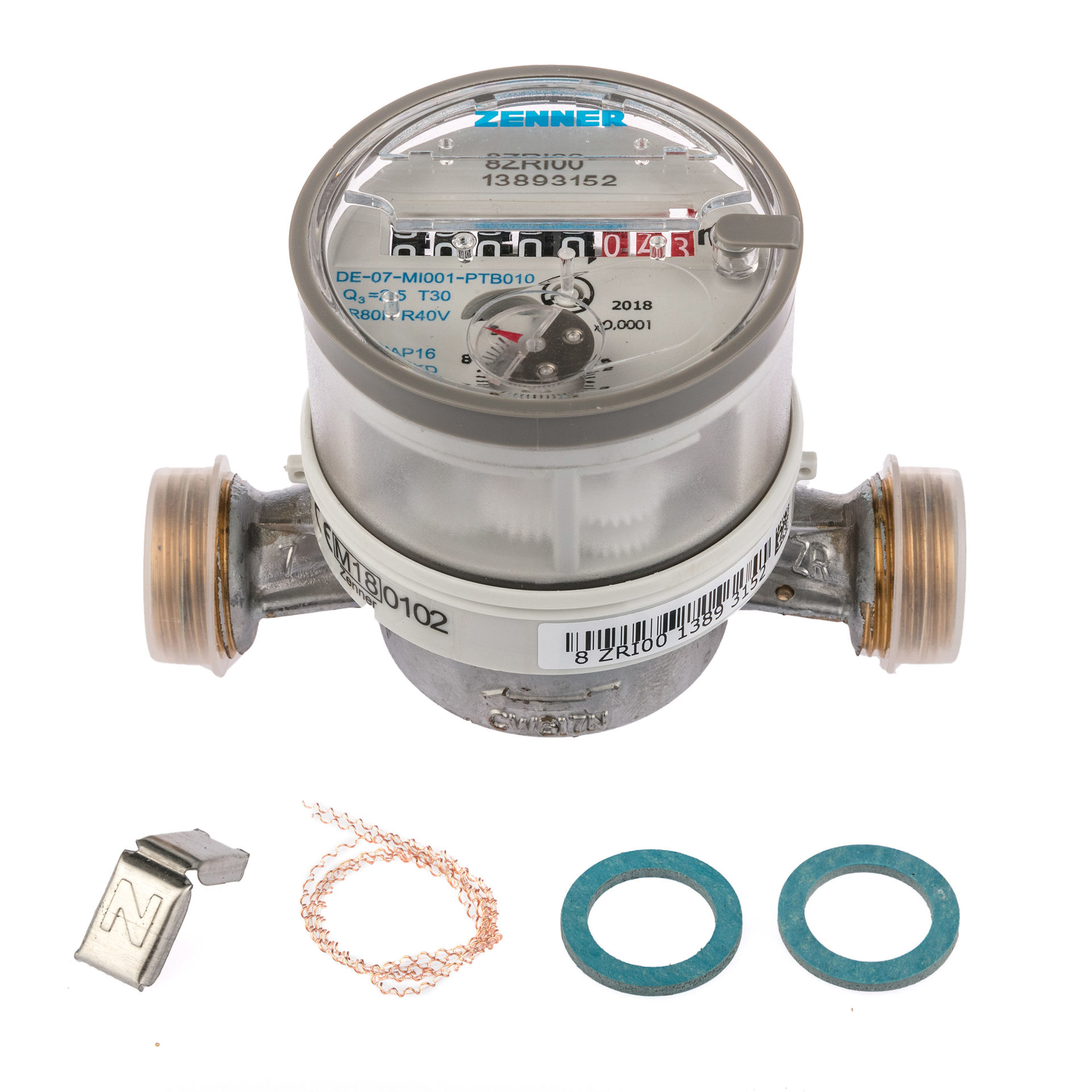 Едноструен сух, ролков водомер с опция за импулсен изход ZENNER, БЕЗ ХОЛЕНДРИ Той има много ниска стойност на задвижване, с възможност за хоризонтален и вертикален монтаж. Компактната форма на сухия броячен механизъм улеснява неговото монтиране и в трудни условия за монтаж. Неговият 8-ролков брояч гарантира отчитане на точни данни. За температури до 30°С се предлага модел за студена вода ETK-M. Алтернативно за температура до 90°С се предлага варианта за топла вода - ETW-M. Възможности Иновационен броячен механизъм с модулна опция за дистанционно отчитане Идеален за отчитане на потреблението на вода в жилищата Вариантът за студена вода предлага сигурност за температура на водата до 30°C Вариантът за топла вода предлага сигурност за температура на водата до 90°С.Подходящи за хоризонтален и вертикален монтаж Антимагнитна защита - преминали изпитания съгл. изискванията на PTB Опция за допълнително монтиране на импулсен изход без демонтаж на водомер Технически данни: Номинален разход (Qn): 1.5m?/h Номинален диаметър DN. Цол : 1/2" Дължина без холендри L2: 110 mm Дължина с холендри L1: 190 mm Максимален разход Qmax : 3 m?/h Минимален разход Qmin : 30 l/h Задвижване : 10 l/h Обхват на показанията min : 0.05 l max :99 999 m? Максимална температура : 30 °C Работно налягане PN :10/16 bar Височина H1: 70 mm Широчина B : 64 mm Тегло: 0.420 kg