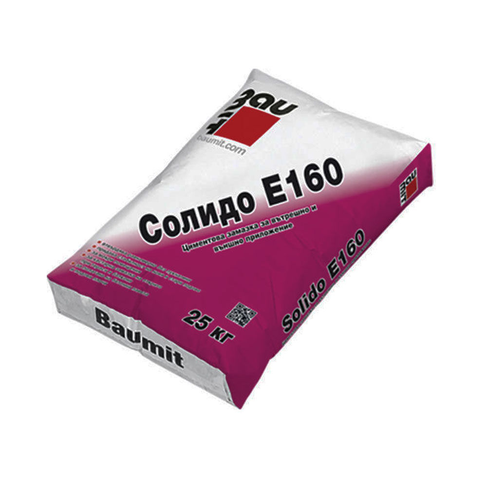 Подовата замазка Баумит Солид Е160 е заводски произведен сух разтвор за полагане на замазки. Е160 е много удобен, тъй като е подходящ, както за ръчно използване, така и за машинно. Замазката е изключително ефективна за постигане на издръжливост на натиск над > 16N/ mm2 и якост на опън при огъване > 4 N/mm². Огромният плюс на Баумит Е160 е постоянния стъстав и нейното уневерсално приложение - като материал за поставяне на бетонни павета, подови плочи, включително при ремонт на тераси и балкони. С нейното лесно полагане ще постигнете изключително качество на резултата.